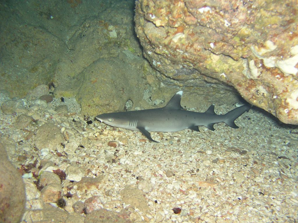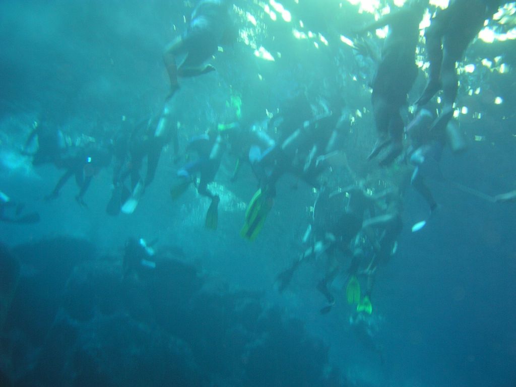 8) タイドプールに戻ってきた。 エグジットラインのところには、赤いフィンを履いたホソやんがいた。 ボーッと安全停止するのも退屈なので、ホソやんを眺めて過ごす(?)ストーカーな俺っち。 (;^_^A アセアセ… |