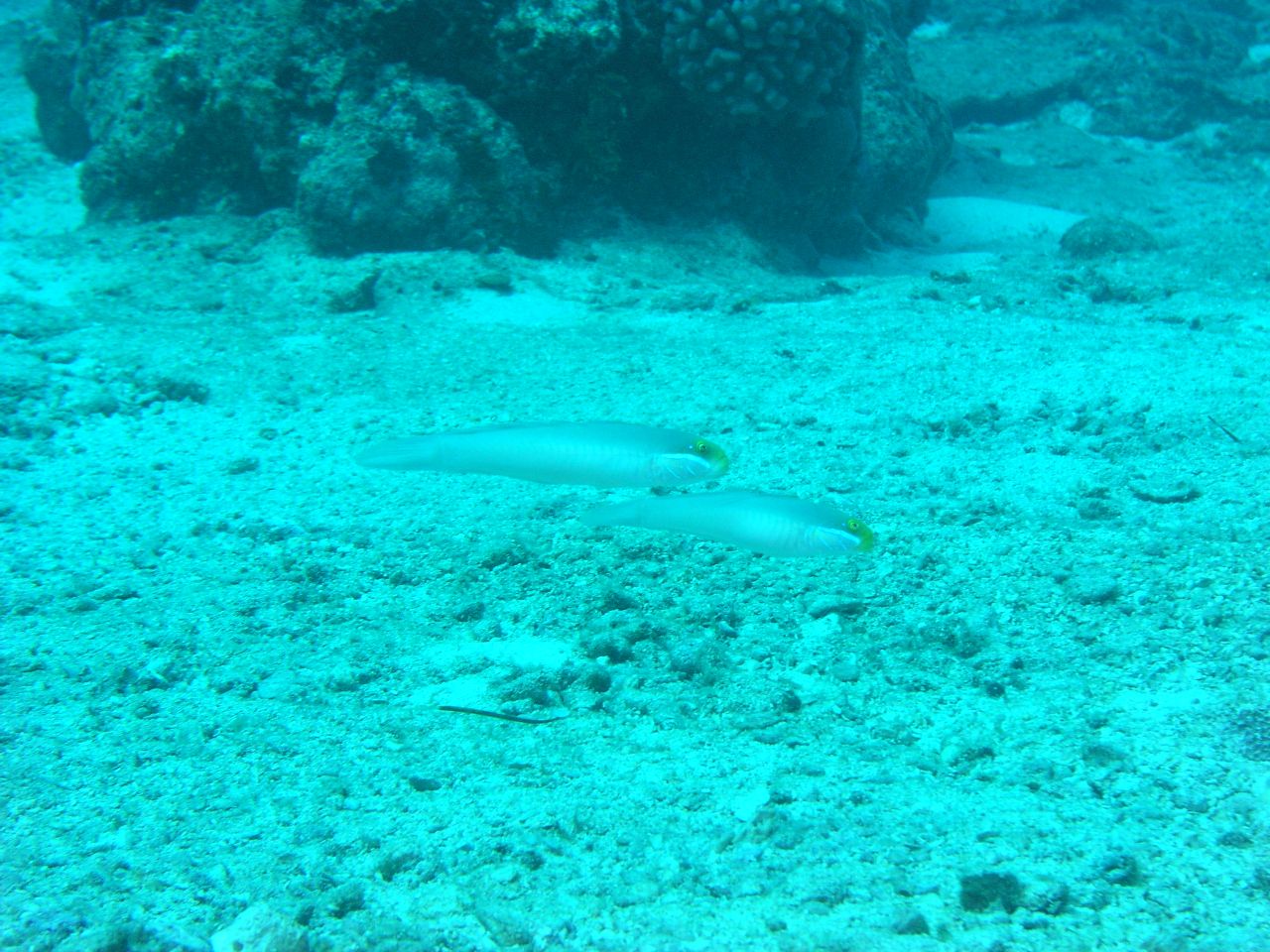 8) ノコギリダイの群れがゆっくり泳いでいて、超接近出来た。 近くで見ると、模様がキラキラしていて綺麗だ。 |