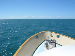 港へは、ケアンズの街中から車で5分ほど。 早速、船に乗り込んで、トップデッキからケアンズ港を眺めた。 天気もいいし、いい景色! |