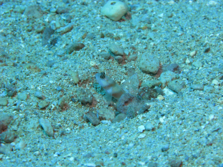 2007年本当に最後のダイビング。 そのポイントは、ラウラウ。 本当はグロットで閉めたいところだが、海が荒れているのだから仕方ない。 午後からもう一本行こうと思えば行けるのだが、俺っちはカウントダウンパーティのために休養すると、このとき密かに心に決めていた。 しかし、他のメンバーもそういう気になってはいけないので、午後から行かないつもりとは、この時点では言わず。 コースは、右側の砂地。 通称? オアシス。 ヨスジの根に向かう途中に、ダテハゼ君がいた。