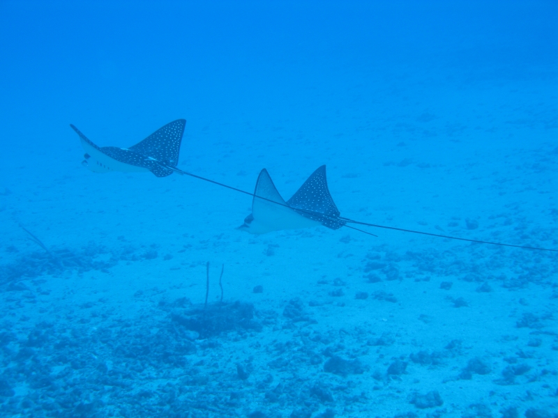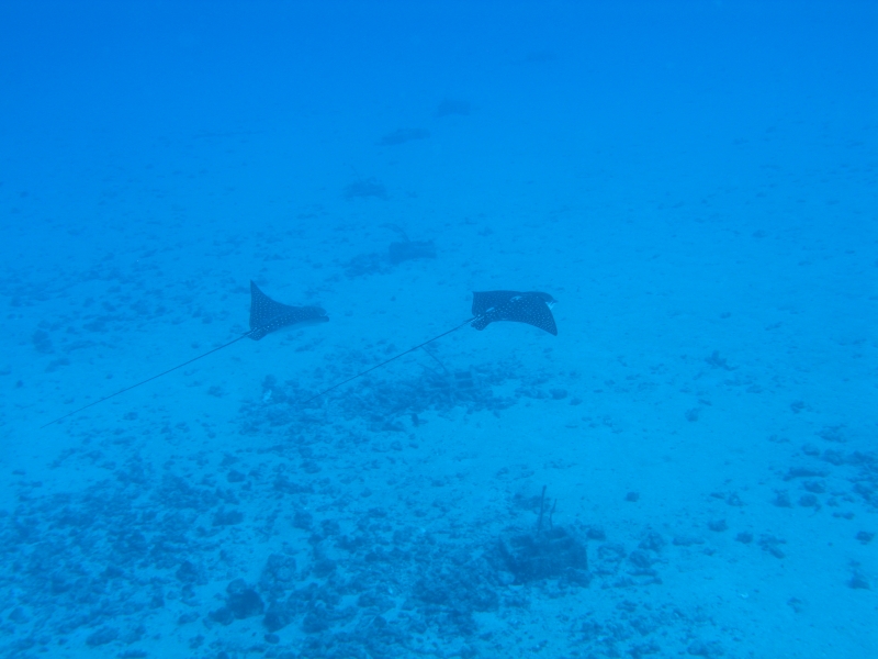 目を上げると、マダラトビエイが2匹前を横切っていくところだったので、ちょっと追いかけた。