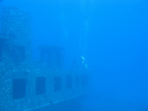 南のポイントは近くてお手軽だけど、沈船は大きいし、なかなか楽しめる。
