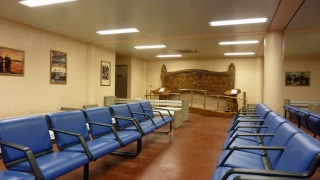 機内の不審物チェックをしている間、飛行機をおろされた半分の乗客はこの待合室にて過ごす。