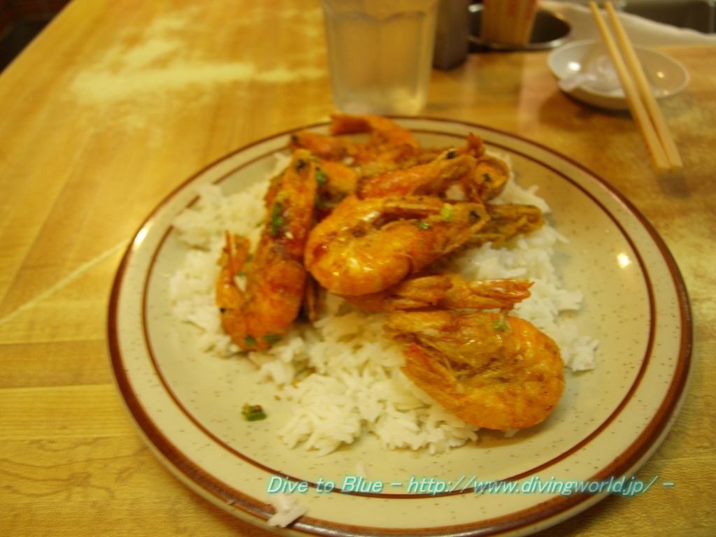 さすがに、ご飯と塩味のエビだけでは、味が淡泊で飽きる。