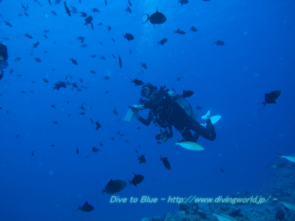 ここではいつもギンガメアジが巻いているが、深いので下から撮るのはちょっと難しいな。 |