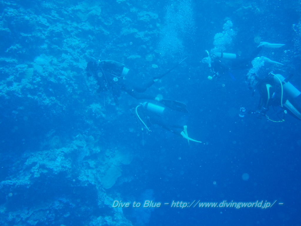 壁を右肩にみて、ドロップオフを徐々に水深を上げながらドリフト。