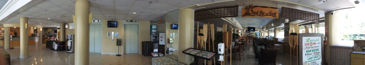 ワイキキサンドビラは一番最後に到着だったので、空港から1時間かかって、12時に到着。