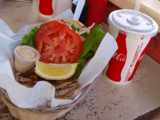 アヒバーガーを注文。 この店は、マヒマヒが本当は主力商品のようだけど、マヒマヒが最近入荷してないようだった。 |