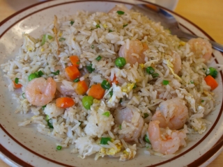 ダイビング後にノースショア観光して帰ったので、ワイキキに戻ったのが午後3時半。 午後5時過ぎにFATTY'S Chinese Kitchenに行って、エビチャーハンを食べた。 |