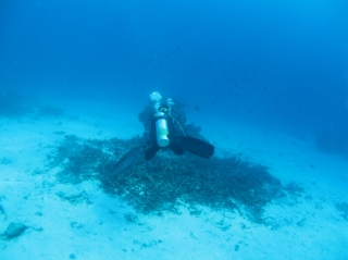 アニターズリーフは、白い砂地の斜面に、ポツンポツンと大小の根が点在するポイント。