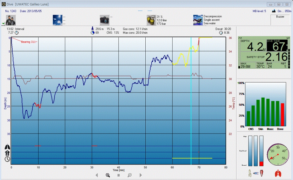 平均水深15.3mで69分も潜れるナイトロックスは良いねぇ。 |
