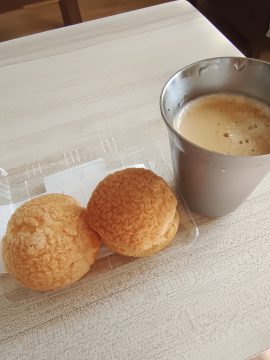 帰宅して、焼肉用の肉をタレに付けてから、ネスプレッソとシュークリームで一息ついた。