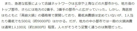 海底捞は、低価格だけど抜群のサービスで、庶民に受けたはずだけどなぁ。
