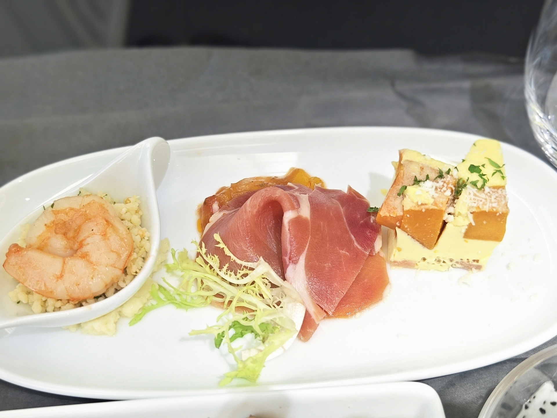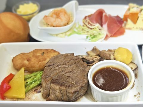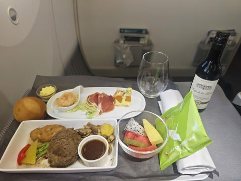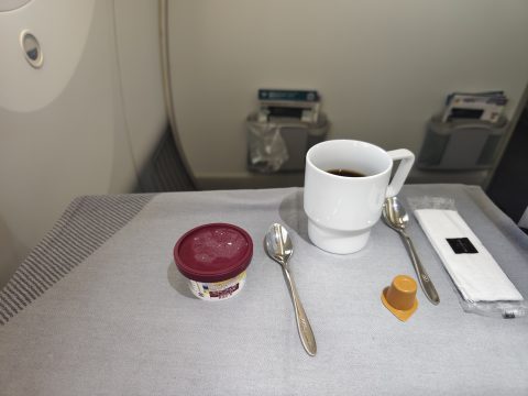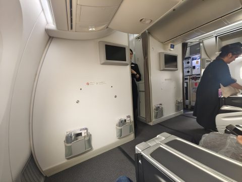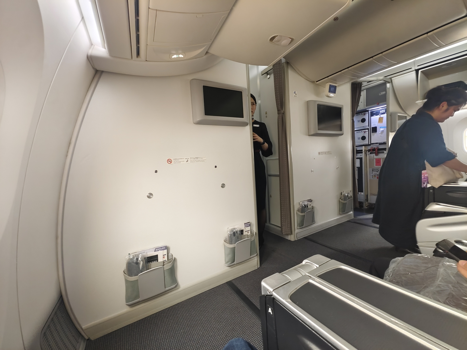 いつもはエコノミーの最前席だけど、今日はビジネスの最前席♪