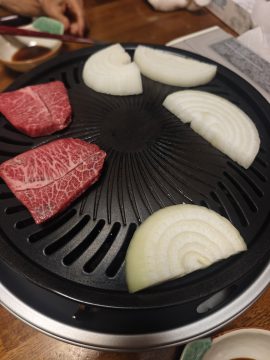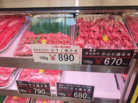 今晩は焼き肉にしようと、山垣まで肉を買いに行った。