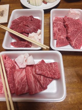 ロース、さがり、ミスジをそれぞれ200gづつ。
