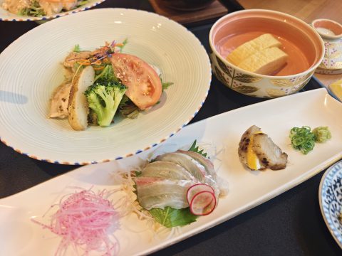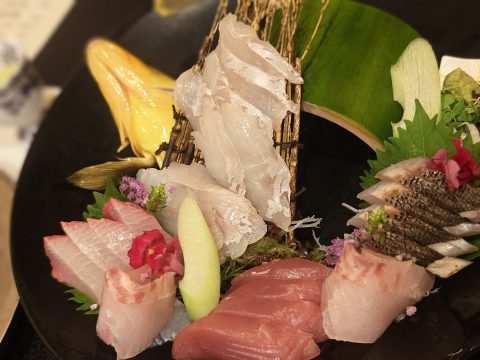 活けキジハタが刺身のメイン
