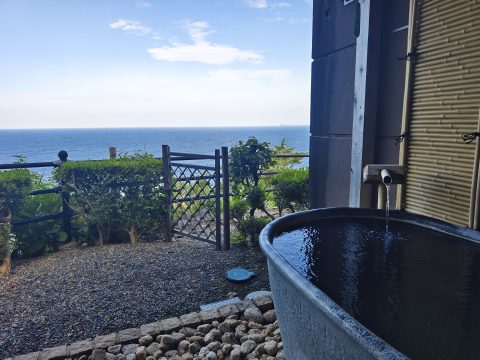 朝起きて、まずは露天風呂。