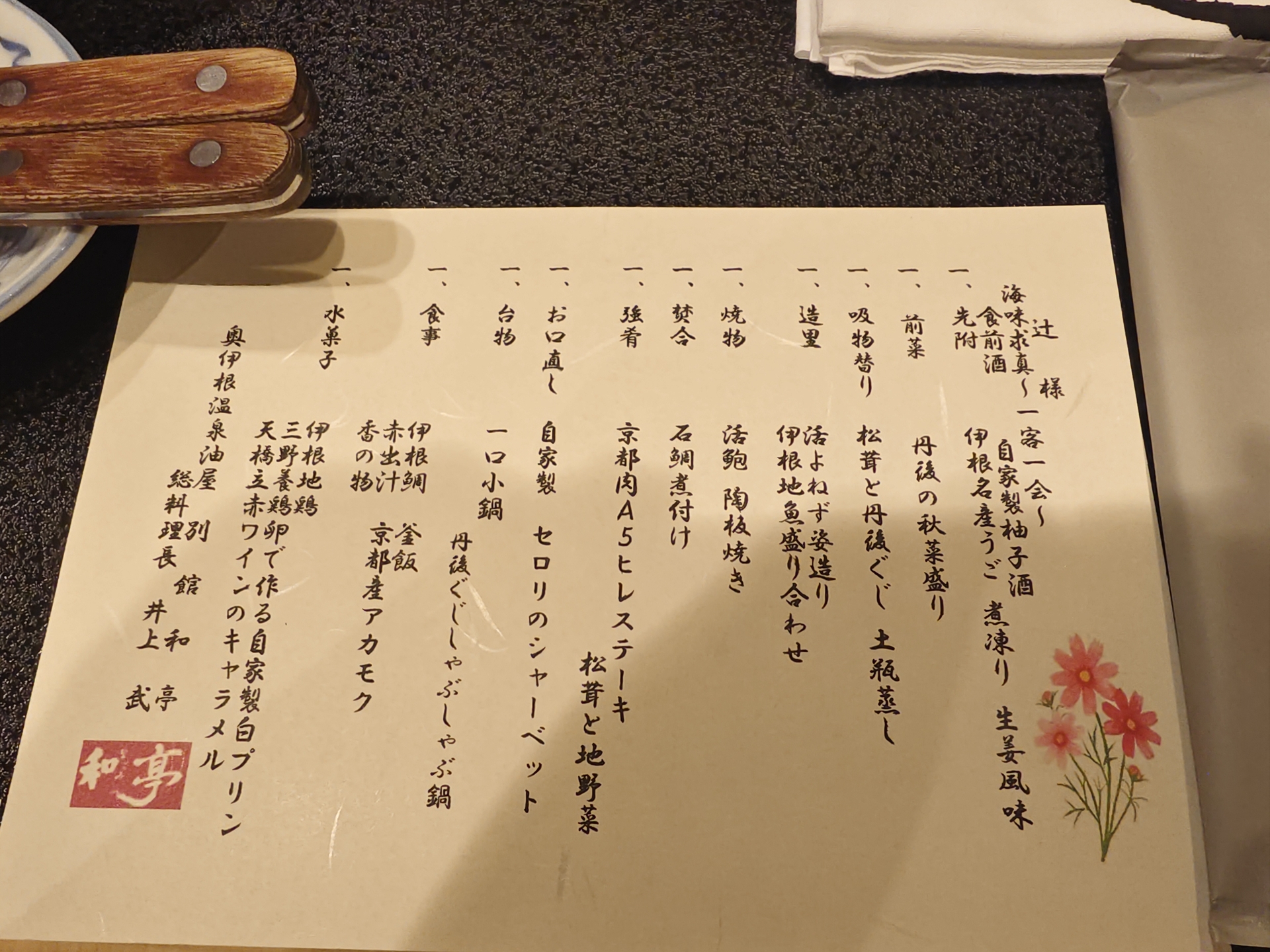 ここでメニュー外の一品が料理長からプレゼント