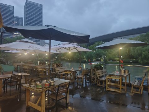 雨はほぼやんでたので、久しぶりにテラス。