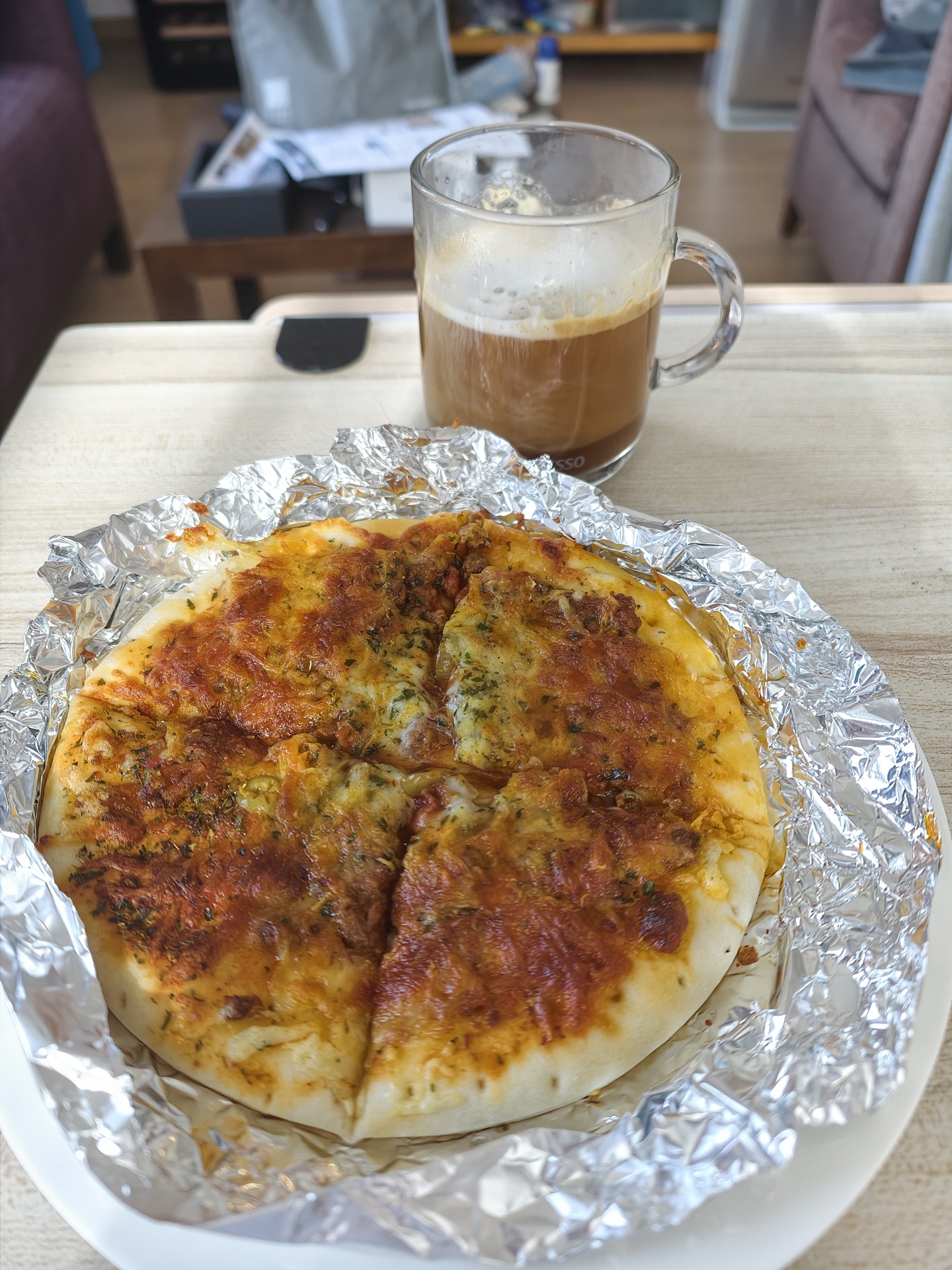 冷凍ピザで一日が始まる。