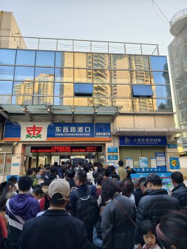 渡し船乗り場は激混み。