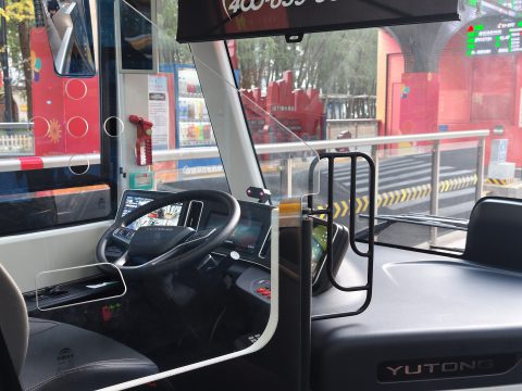 新しい車体のバスだった。