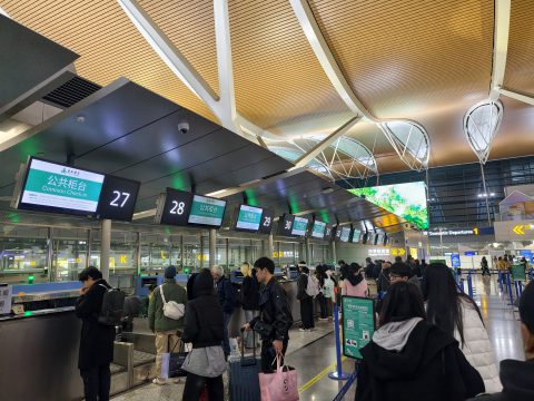 数年前春秋航空のチェックインでめちゃめちゃ列んだ嫌な覚えがあるけど、今日は朝早いからかほぼ待たずにチェックインできた。