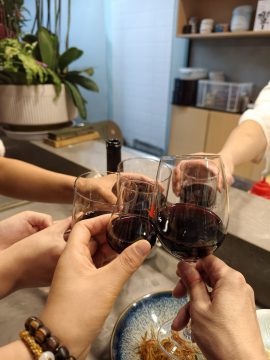 松扇で、今年一年良いサービスをしていただいたお礼にワインを入れて、みんなで乾杯♪