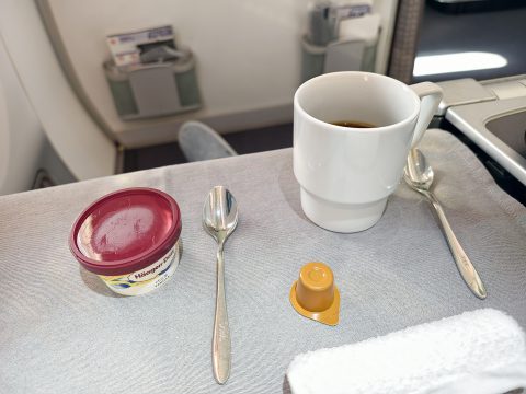CAさんがジャケットをハンガーにかけてくれたりビジネスクラス気分満喫♪