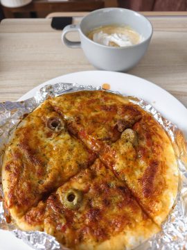 ワンタン作るつもりだったけど、予定変更して冷凍ピザを外卖。