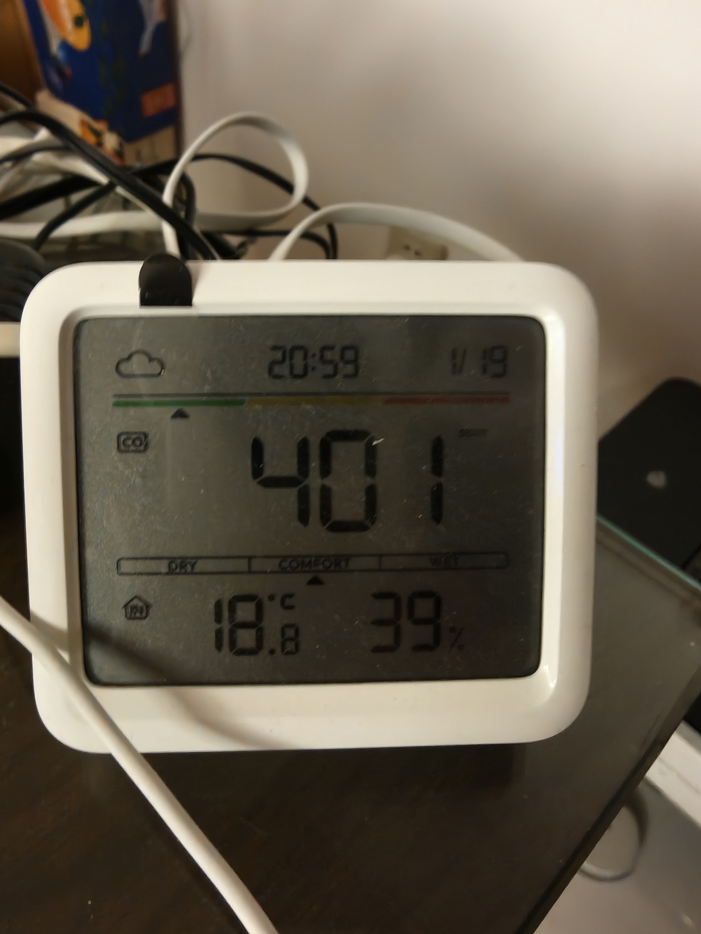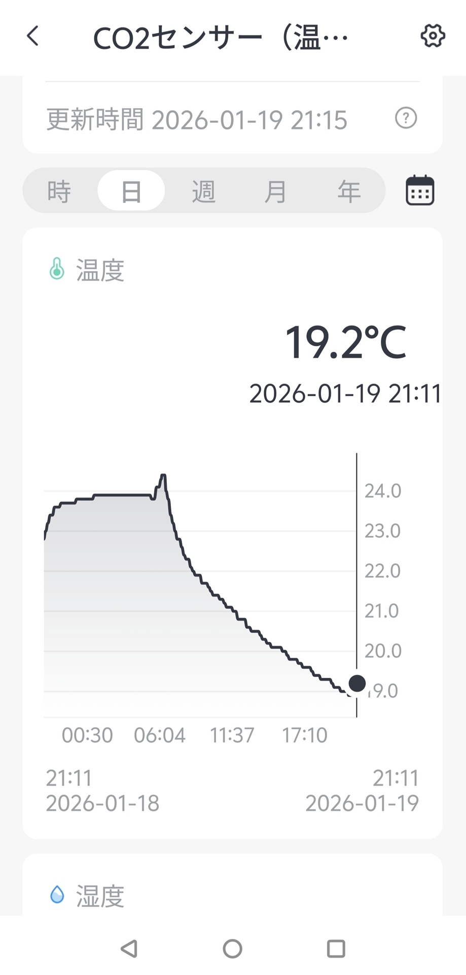 昨晩エアコンつけて寝て24度だったのが、朝エアコン止めて室温下がるけど、19度ぐらいまでしか下がってない。