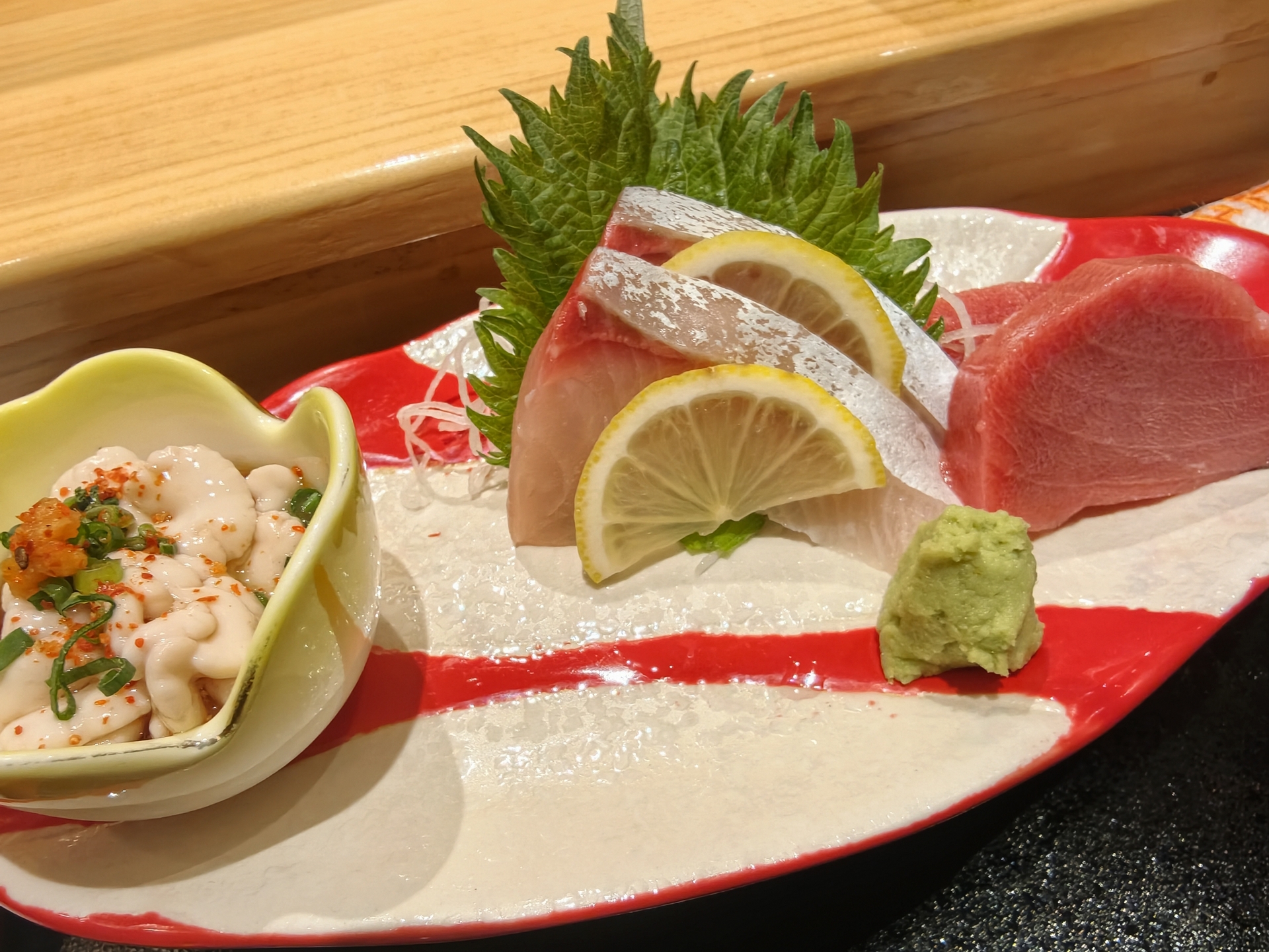 濃厚な味の刺し身を頂く。