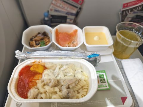 今日の機内食はまずかったなぁ。