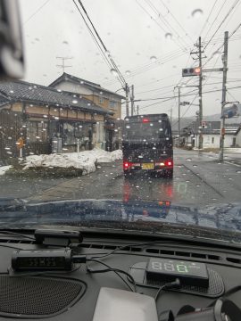 高速道路を降りると、道の両脇に雪がかなり残っていた。