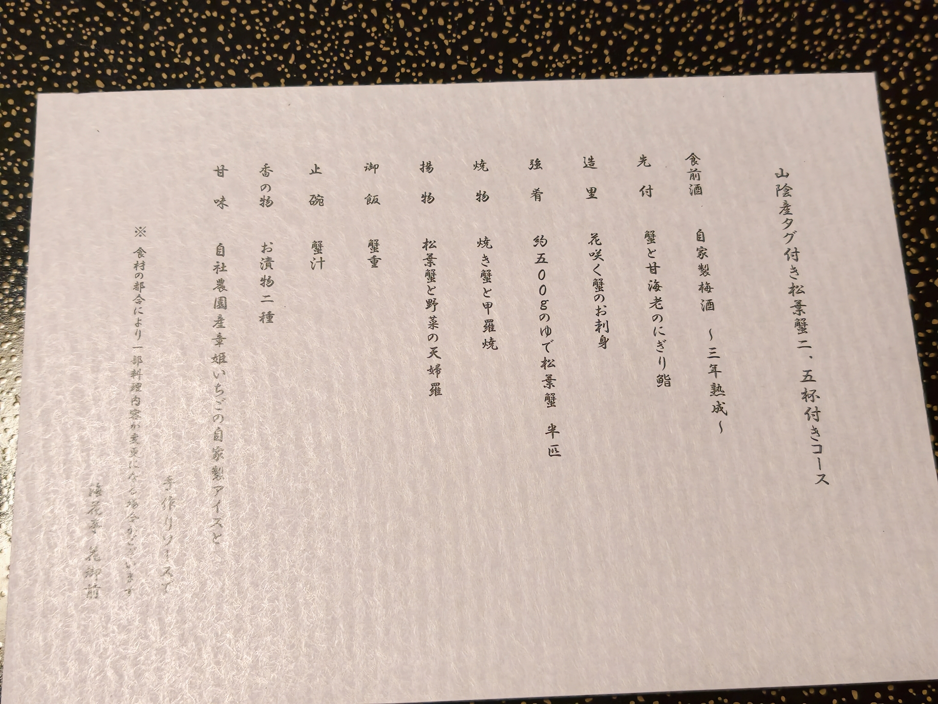 晩御飯は、タグ付き地ガニ2.5杯コース。