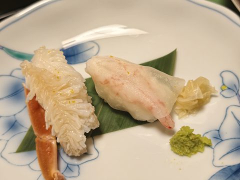 甘エビと、ズワイガニの寿司。