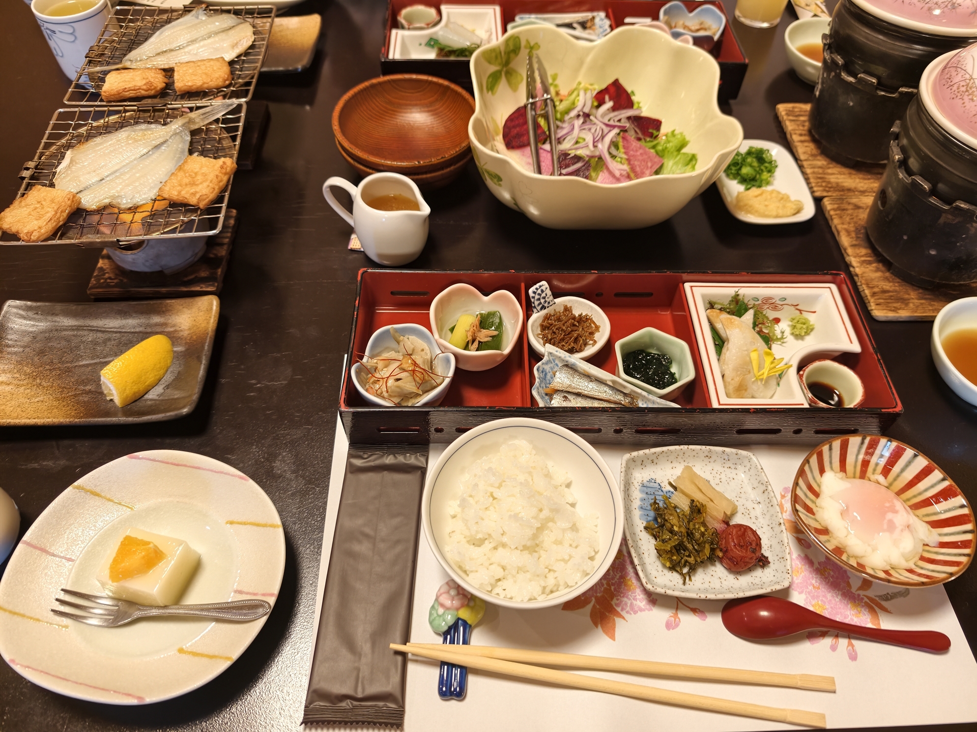 朝7時ぐらいに起き出して、まずは露天風呂に入って、日本海を眺めてのんびり。
