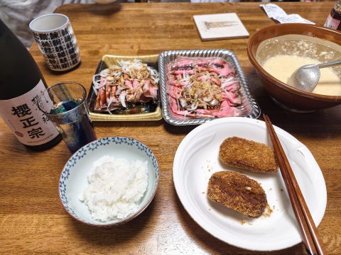 晩ごはんは山芋買ってきて、とろろご飯作った。