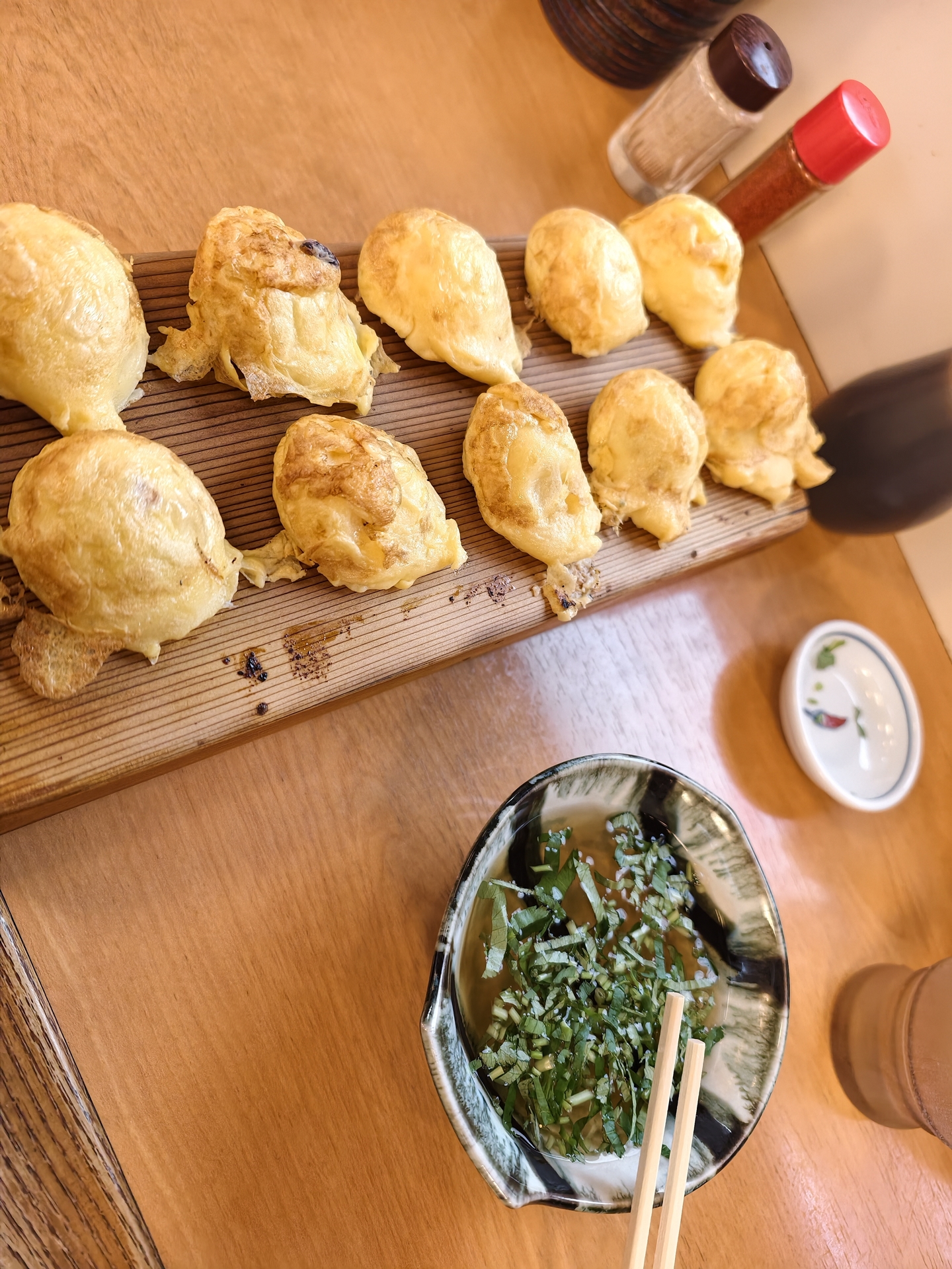 インテリア販売会で疲れて、昼はたこ焼きで軽く。