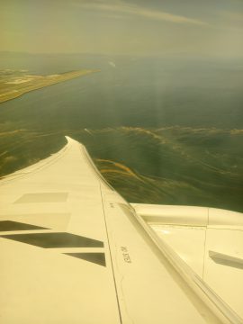 今日も、エコノミー最前列で足元広々快適なフライトだった。