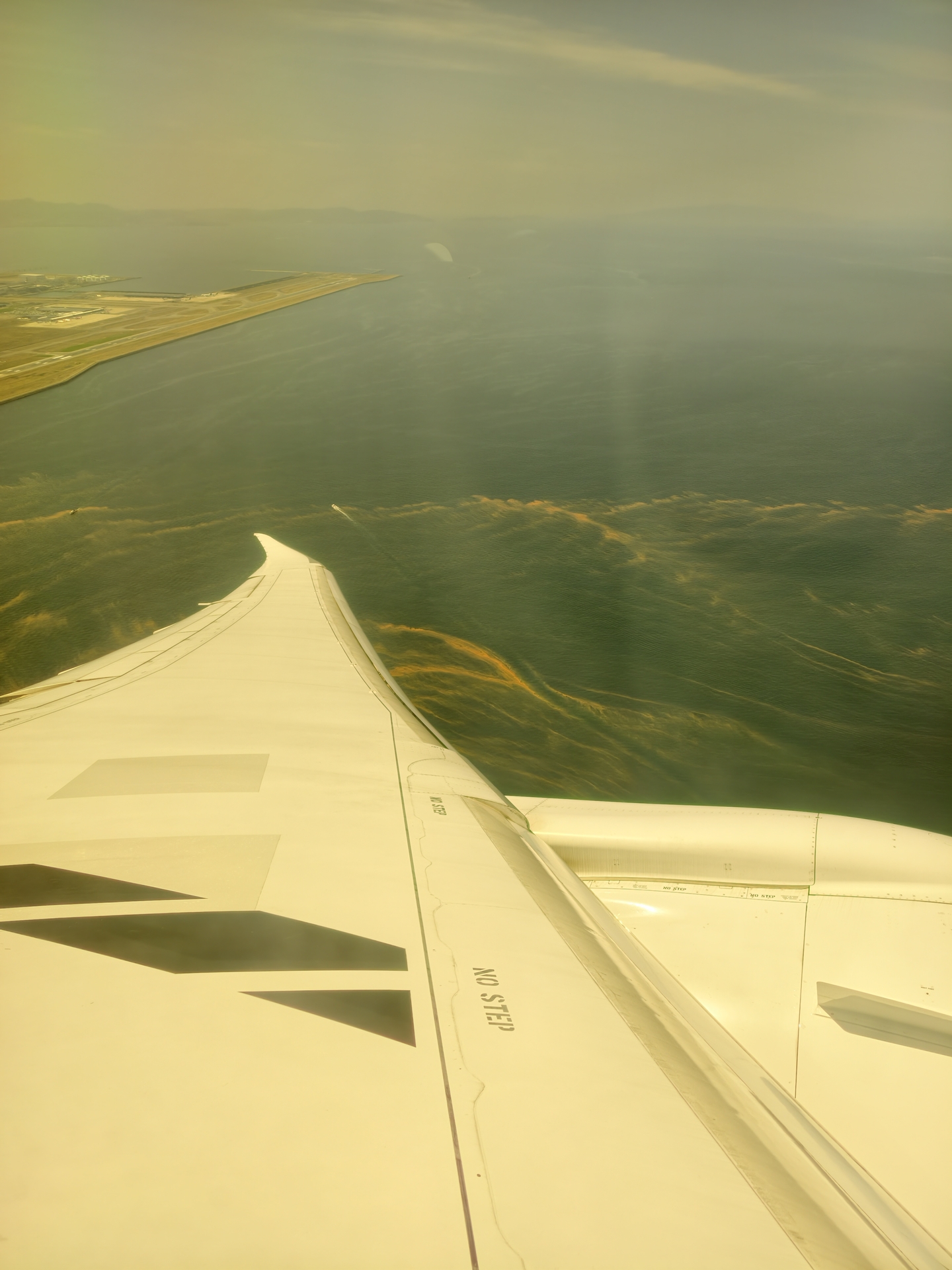 関西空港近辺だけ赤潮らしきものが発生してた。