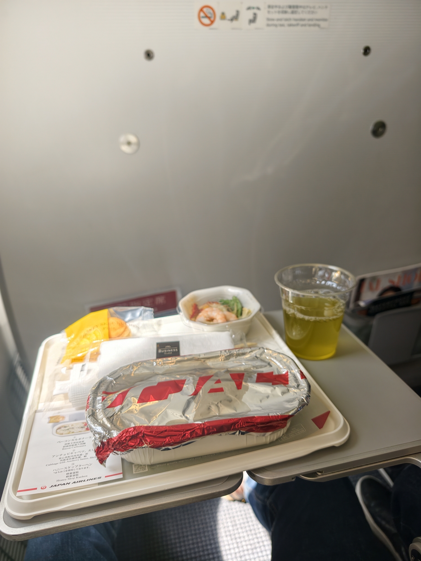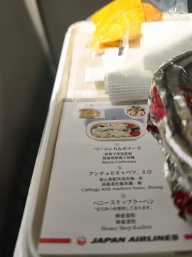 機内食は、ベーコンカルボナーラ。