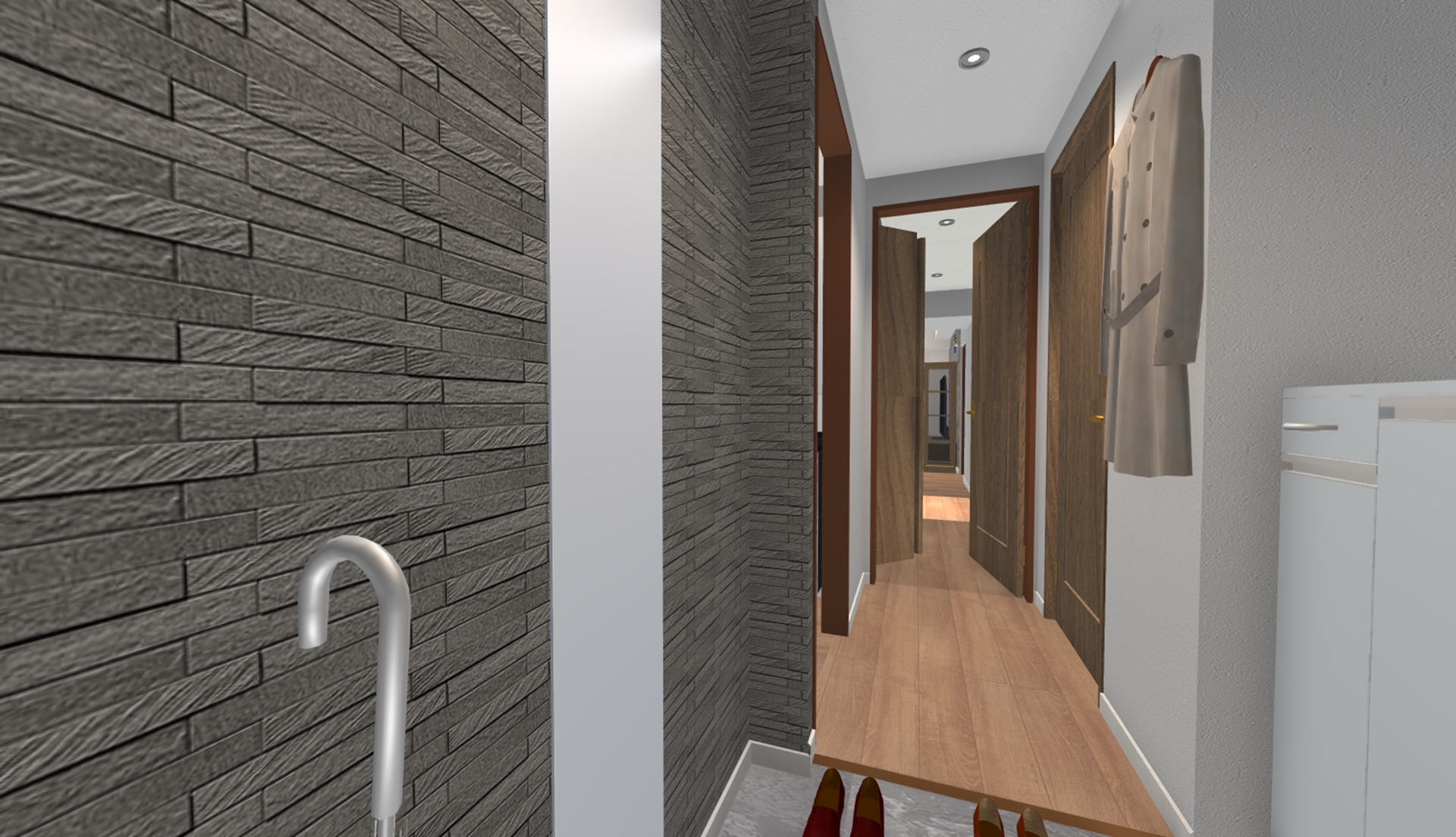 右側にはコート掛けをつけるつもりなので、コートもレイアウトしてみた。